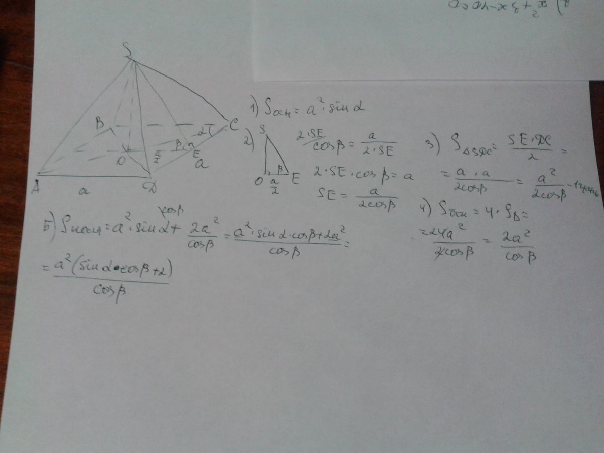 . найдите площадь поверхности пирамиды если сторона ромба равна