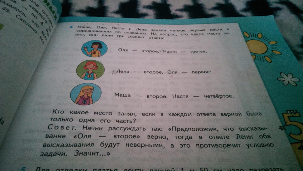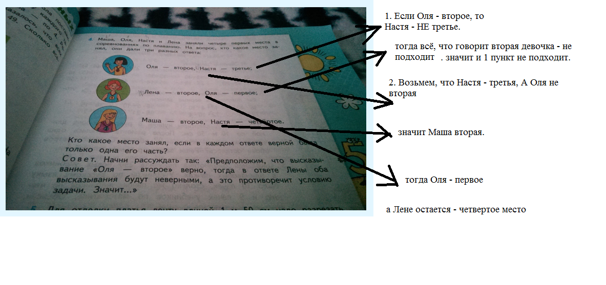 Маша, Оля, Настя и Лена заняли 4 первых места по плаванию....... рисунок с ответом в приложении.......