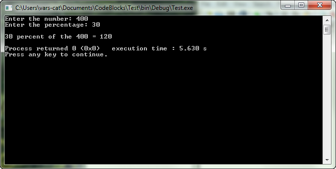 написать программу подсчёта x процентов от заданного числа. число и проценты вводятся с клавиатуры.