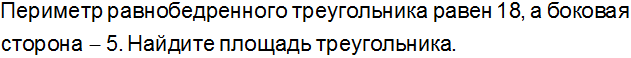 P=2a+b, Po formule S= 8÷4√4×5²-8²=2√100-64=2√36=12