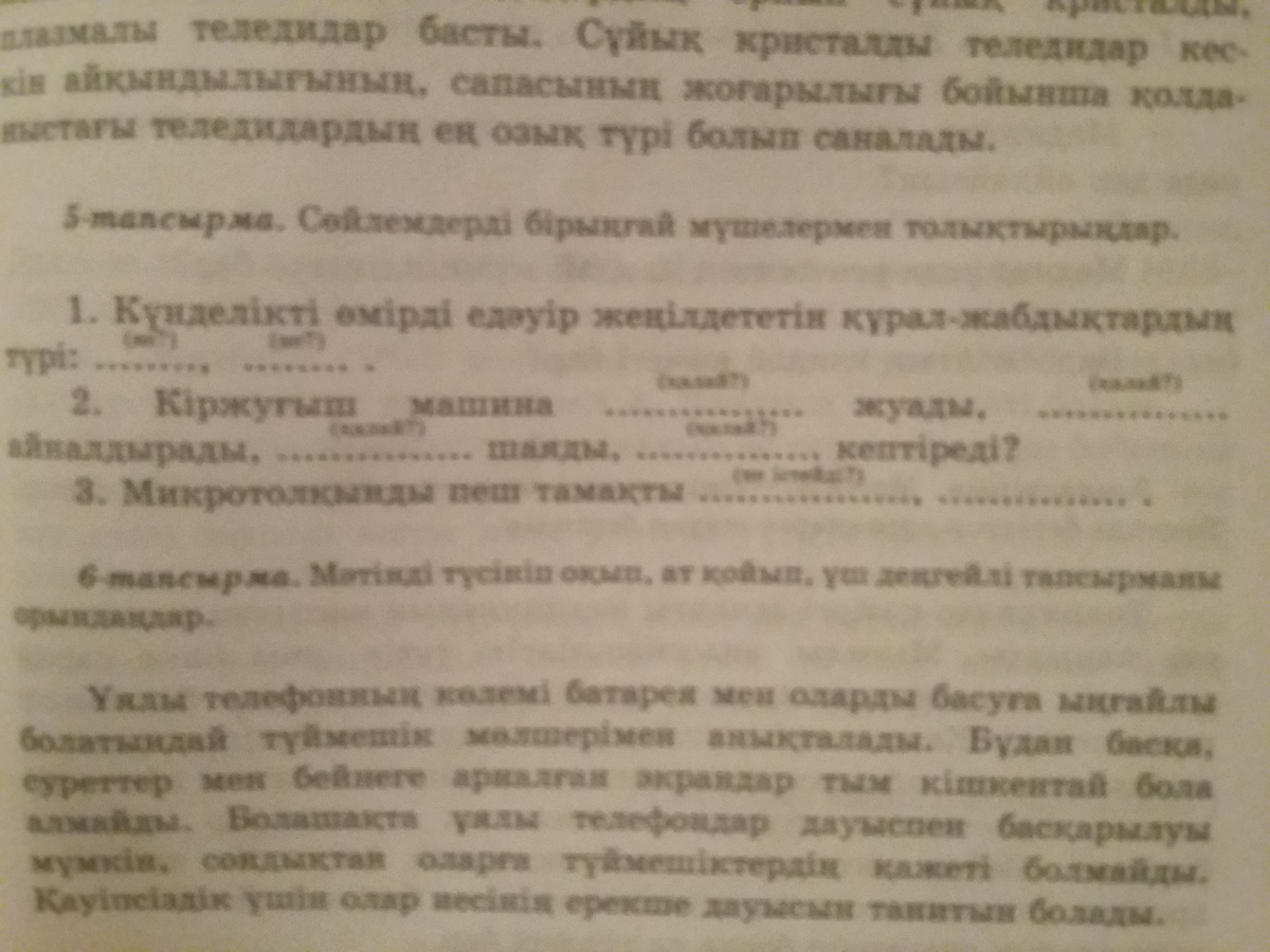 Күнделікті өмірді едәуір жеңілдететін құрал жабдықтардың түрі: кіржуғыш машина, микротолқынды пеш.