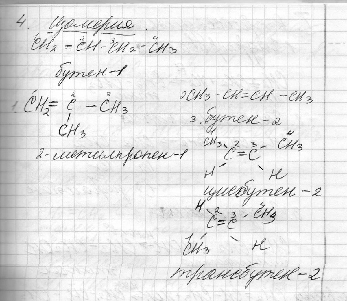 Запишите сокращенные структурные формулы изомерных алкенов,молекулы которых содержат четыре атома углерода,и укажите типы изомерии.