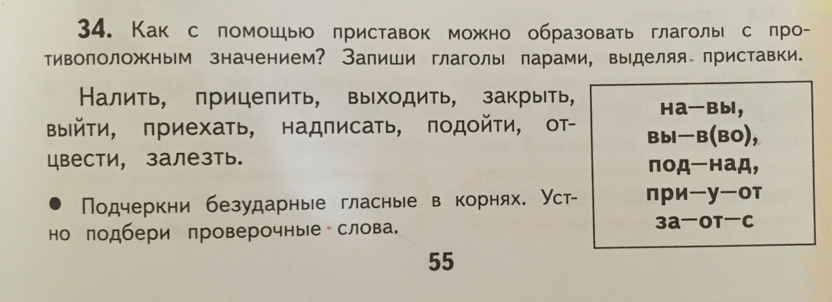 вылить,отцепить,входить,открыть,войти,уехать,подписать,отойти,зацвести-отцвести,слезть