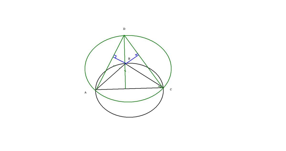 докажите,что радиус окружности, описанной вокруг тупоугольного треугольника, равен радиусу окружности, проходящей через точку пересечения его высот и две вершины треугольника