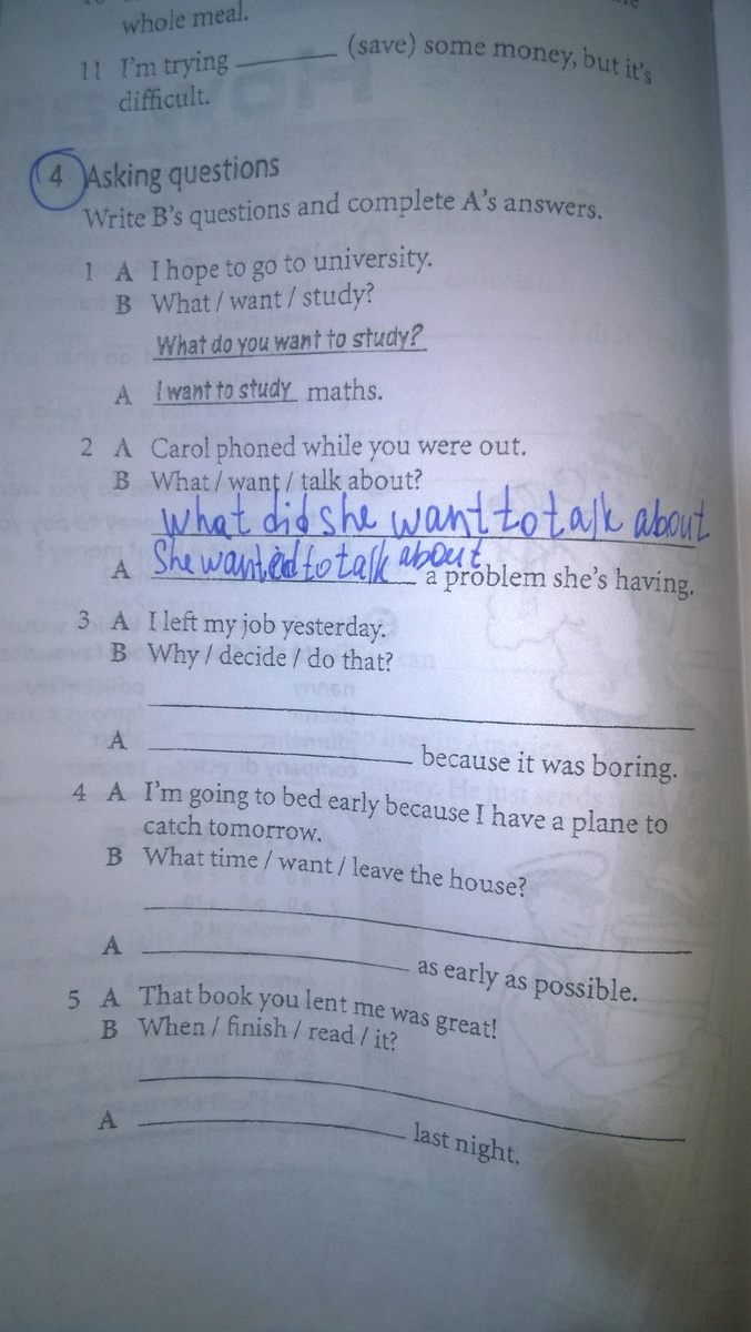 4 What time do you want to leave the house? I want to leave the house as early as possible.