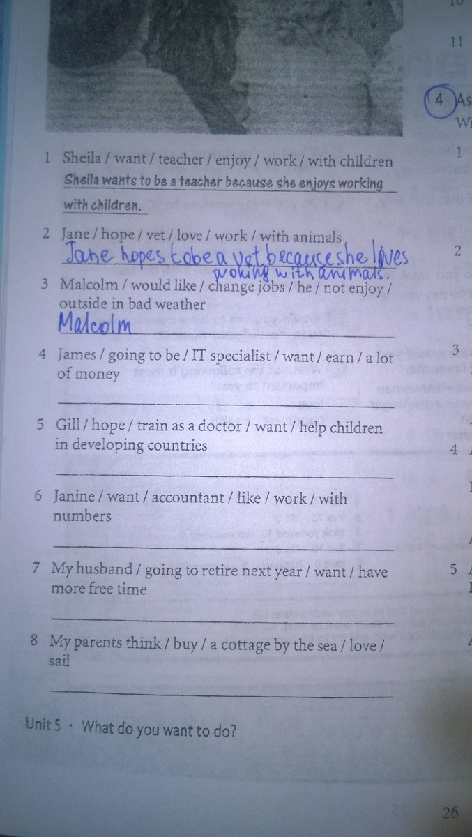 6 Janine wants to be an accountant because she likes to work with numbers.