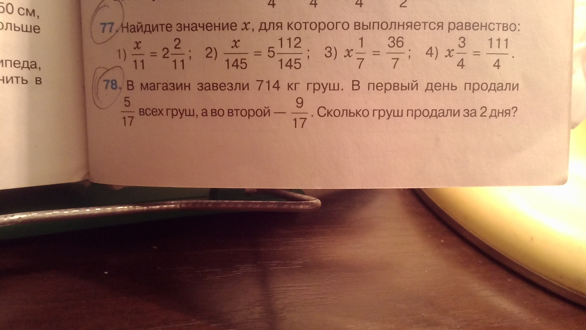 за первый день продали 5/17 всех груш, а это = 714кг *5/17=3570/17=210кг