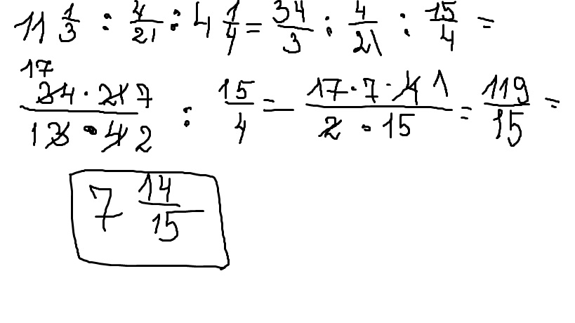 Решите пример: 11 целых 13 делёная на 421 и делёная на 4 целых 14