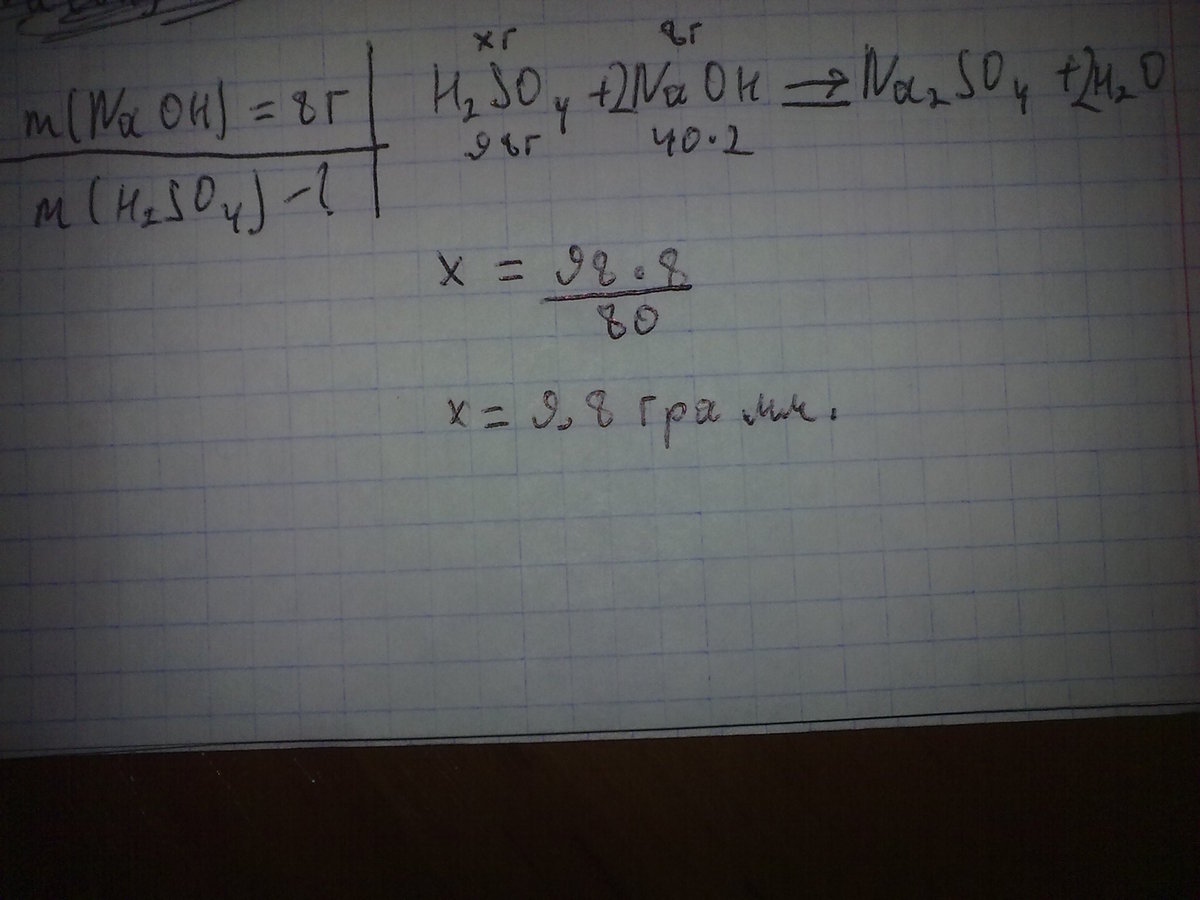 какую массу сульфатной кислоты следует взять для нейтрализации 8г натрий гидроксида. если можете объясните