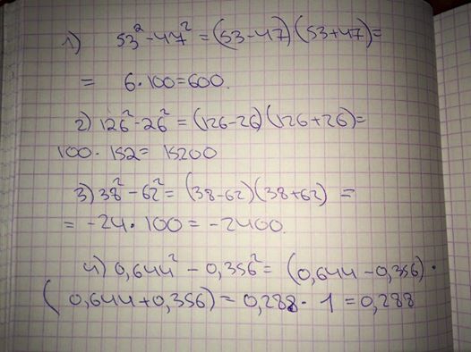 С помощью формулы разности квадрата вычислите: