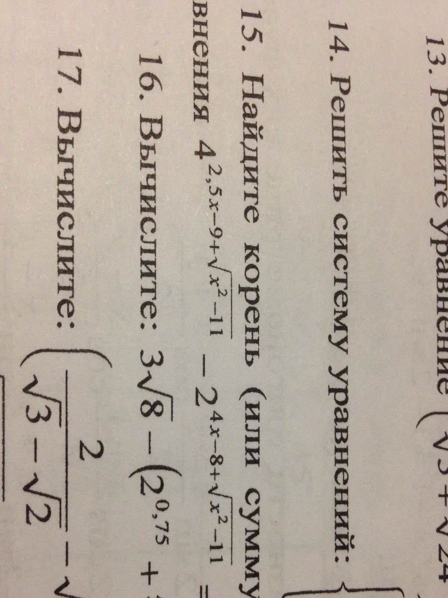 2 в степени (5х-3х -18-3 + 2√(х²-11)) - 2 в степени (4х-3х -8-3 + √(х²-11)) = 1