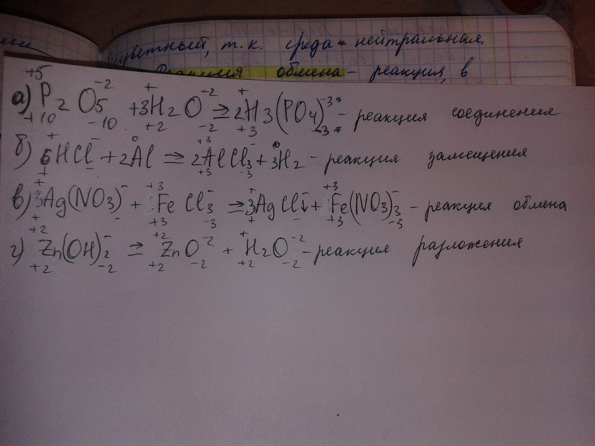 а)оксид фосфора(V)+вода→фосфорая кислота