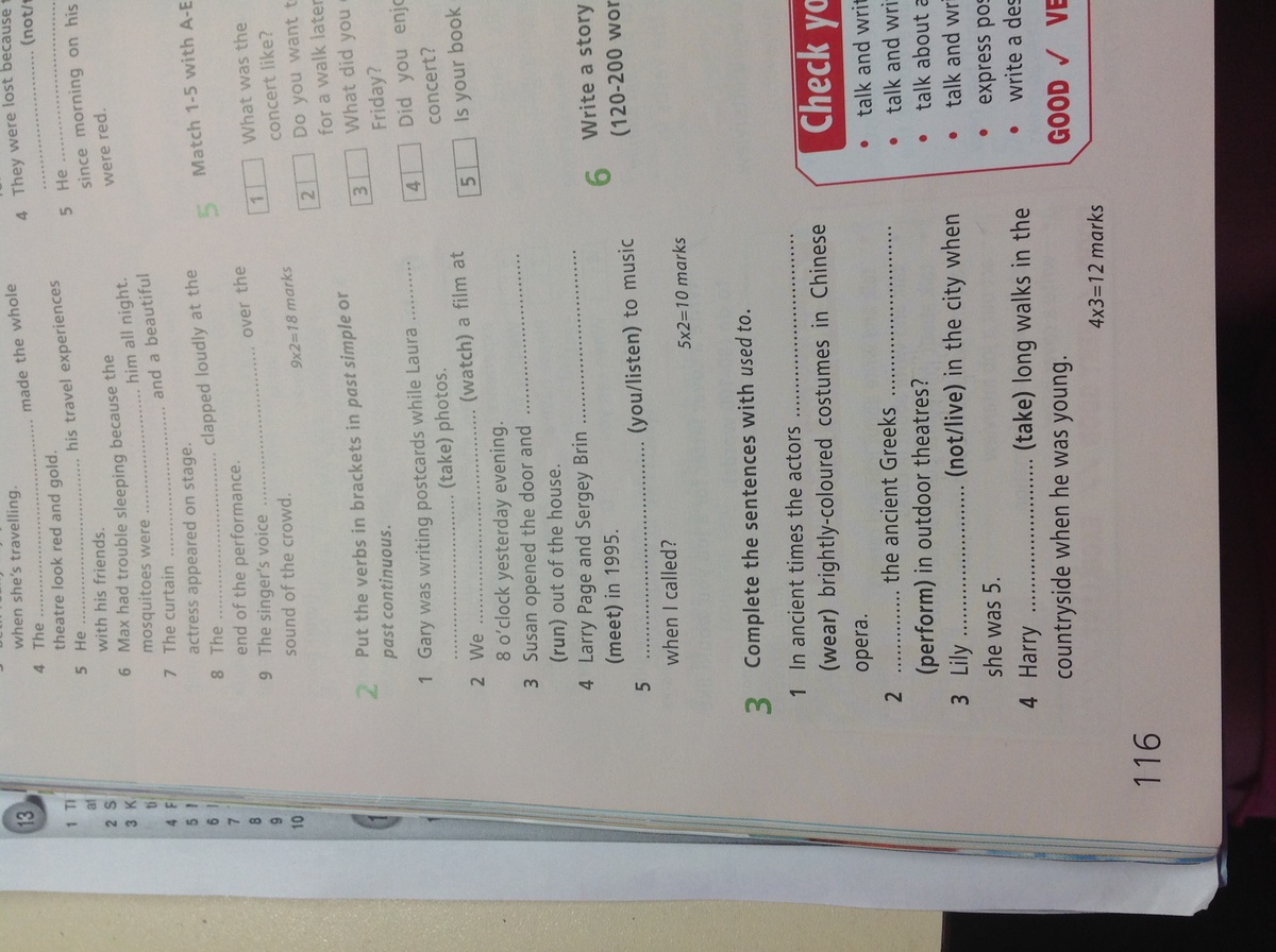 1) was taking 2) were watching 3) ran 4) met 5) were you listening