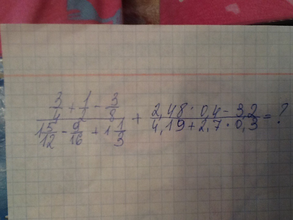 3/4+1/2-3/8=6/8+4/8-3/8=7/8