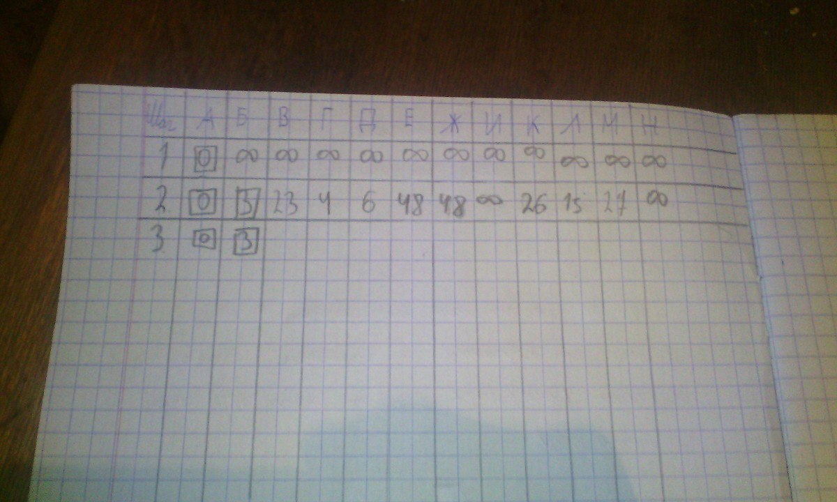 А эта таблица сделана точно с помощью алгоритма дейкстры? Могу расписать его пошагово