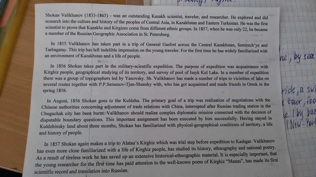 (1835-1865) был выдающимся казахским ученым, путешественником и исследователем.
