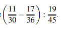((11/30)-(17/36)):(19/45)=((396-510)/1080):(19/45)=(-114/1080):(19/45)=(-114*45)/(1080*19)=-5130/20520=-1/4=-0.25