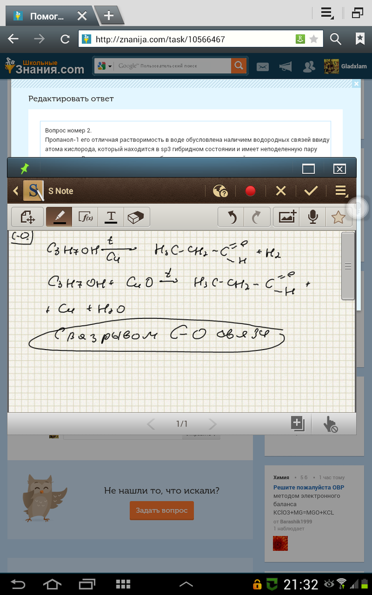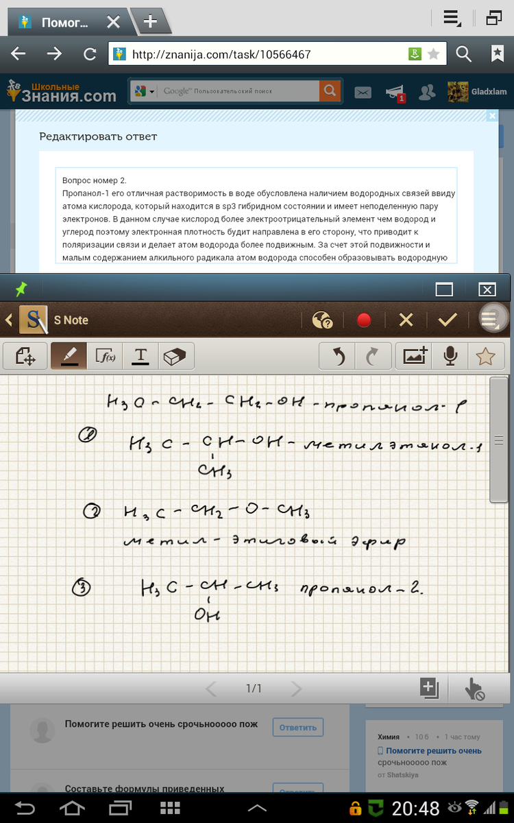 Пропанол-1 его отличная растворимость в воде обусловлена наличием водородных связей ввиду атома кислорода, который находится в sp3 гибридном состоянии и имеет неподеленную пару электронов. В данном случае кислород более электроотрицательный элемент чем водород и углерод поэтому электронная плотность будит направлена в его сторону, что приводит к поляризации связи и делает атом водорода более подвижным. За счет этой подвижности и малым содержанием алкильного радикала атом водорода способен образовывать водородную связь с атомами кислорода молекулы воды ввиду того, что водород не имеет внутренних электронных оболочек и его s- орбиталь не обладает электронной плотностью, где она частично вакантна.