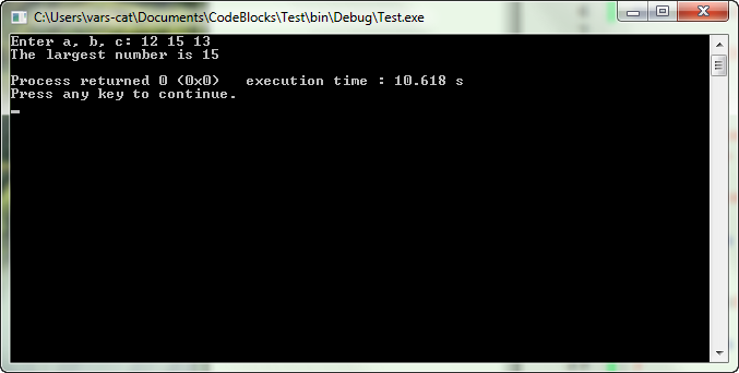 cout << "The largest number is " << check(a, check(b, c)) << endl;