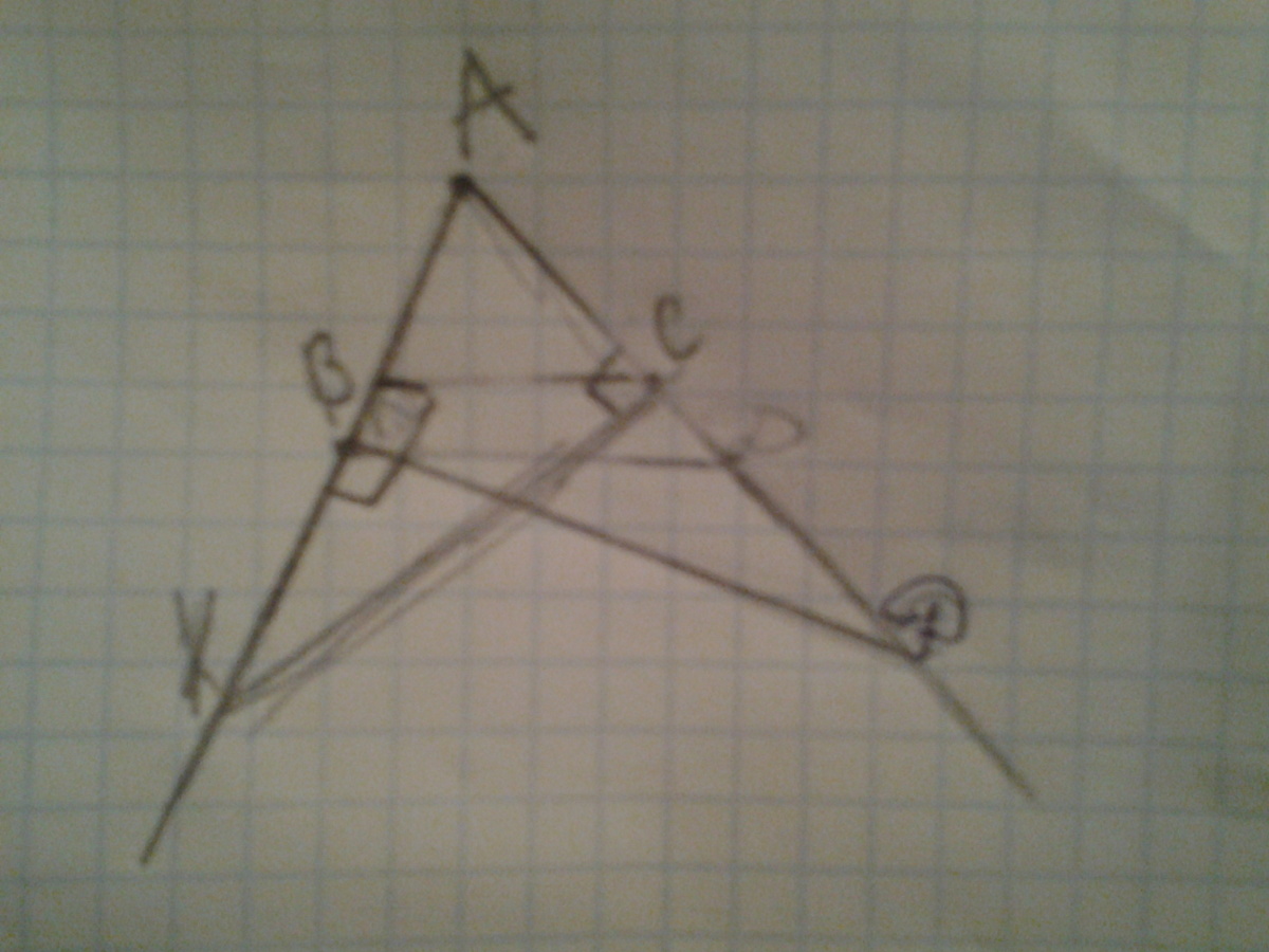 начертите угол с вершиной в точке А. отложите на сторонах угла отрезки АВ и АС так, что АВ=АС. из точки В опустите перепендикуляр ВD на луч АС. из точки С опустите перпендикуляр СК на луч АВ. докажите, что треугольники АВD и АСК равны. мне очень надо иначе мне 2 поставят!!(((( пожалуйста сфотографируйте и отправьте, будьте добры!!