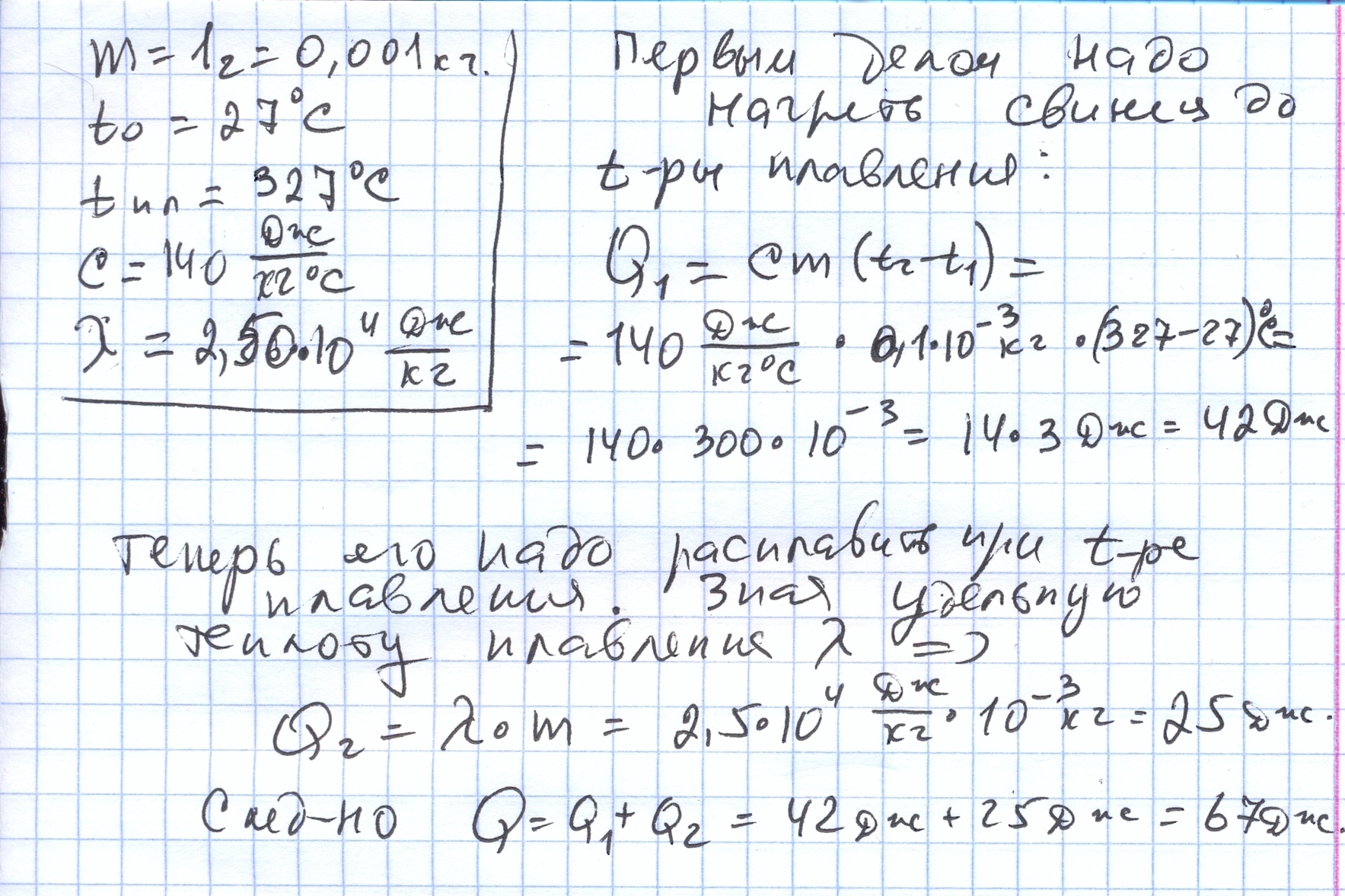 Какое количество теплоты потребуется для нагрева¬ния и плавления 1 г свинца, начальная температура ко¬торого 27 °С