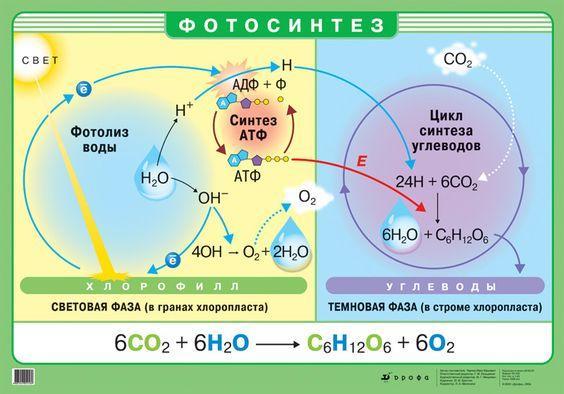 смотрите на вкладке общее уравнение фотосинтеза