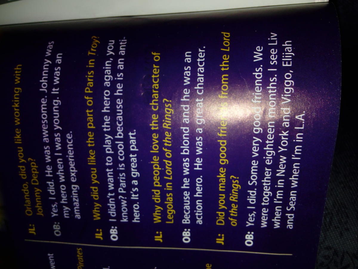 -Да, я завел несколько хороших друзей. Мы вместе уже 18 месяцев. Я вижу Лив, когда приезжаю в Нью Йорк и Вигго, Элайджа и Шона, когда я в Лос-Анжелесе.
