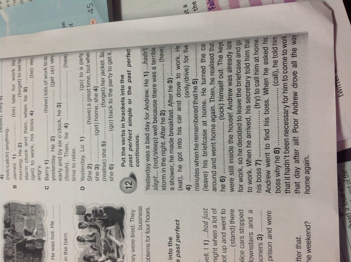 B 1) was 2) had forgotten 3) got 4) was (мне кажется, что здесь по смыслу не очень подходит паст перфект, хотя по конструкции должен быть именно он, т.е. had been, в общем не знаю честно говоря...)