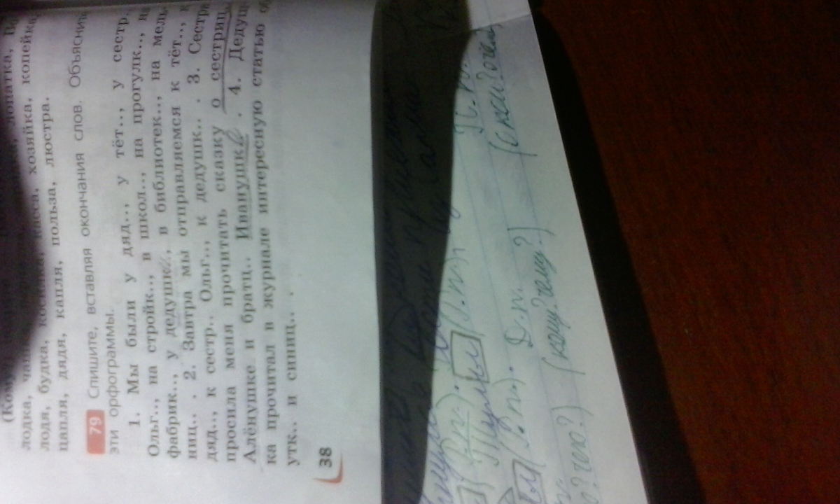 1) У дяди, у тёти, у сестры Ольги, на стройке, в школе, на прогулке, на фабрике, у дедушки, в библиотеке, на мельнице. 2) к тёте, к дяде, к сестре Ольге, к дедушке. 3) О сестре Алёнушке и братце Иванушке. 4) о утке и синице.