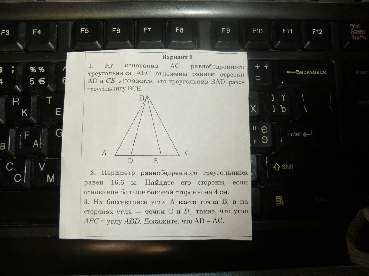 1) треугольники равны по первому признаку т.к ав=вс по усл угол а равен углу с т к треугольник равноравнобедренный ад=ес по усл
