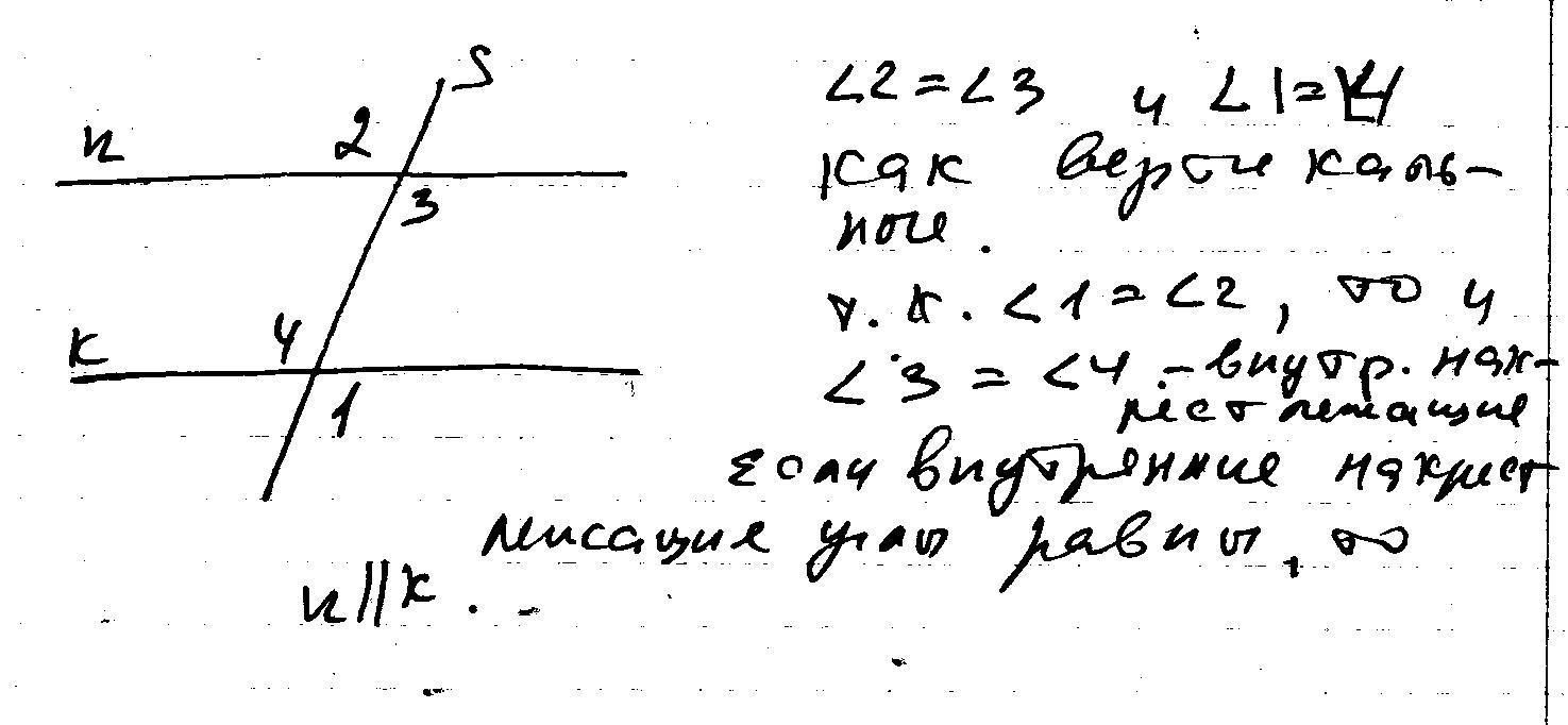 Эти два угла внешние накрест лежащие. Они равны, если прямые n и k параллельны. . И, наоборот, если он равны, прямые параллельны. То есть, n||k так как эти внешние накрест лежащие углы равны.