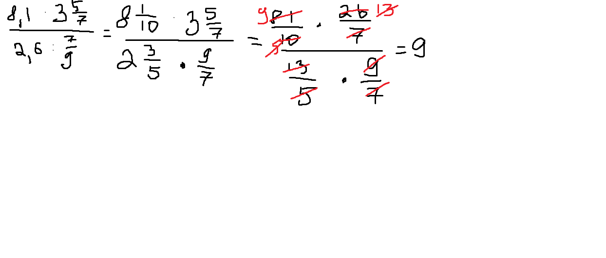 8,1* 26 седьмых делим на 2,6: семь девятых= сто восемь тридцать пятых делим на 117 тридцать пятых равно сто восемь сто семнадцатых
