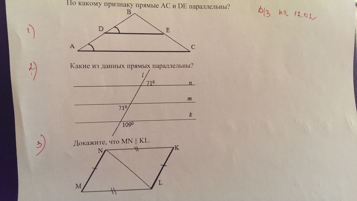 2) n паралл. m; m паралл. k; n паралл. k