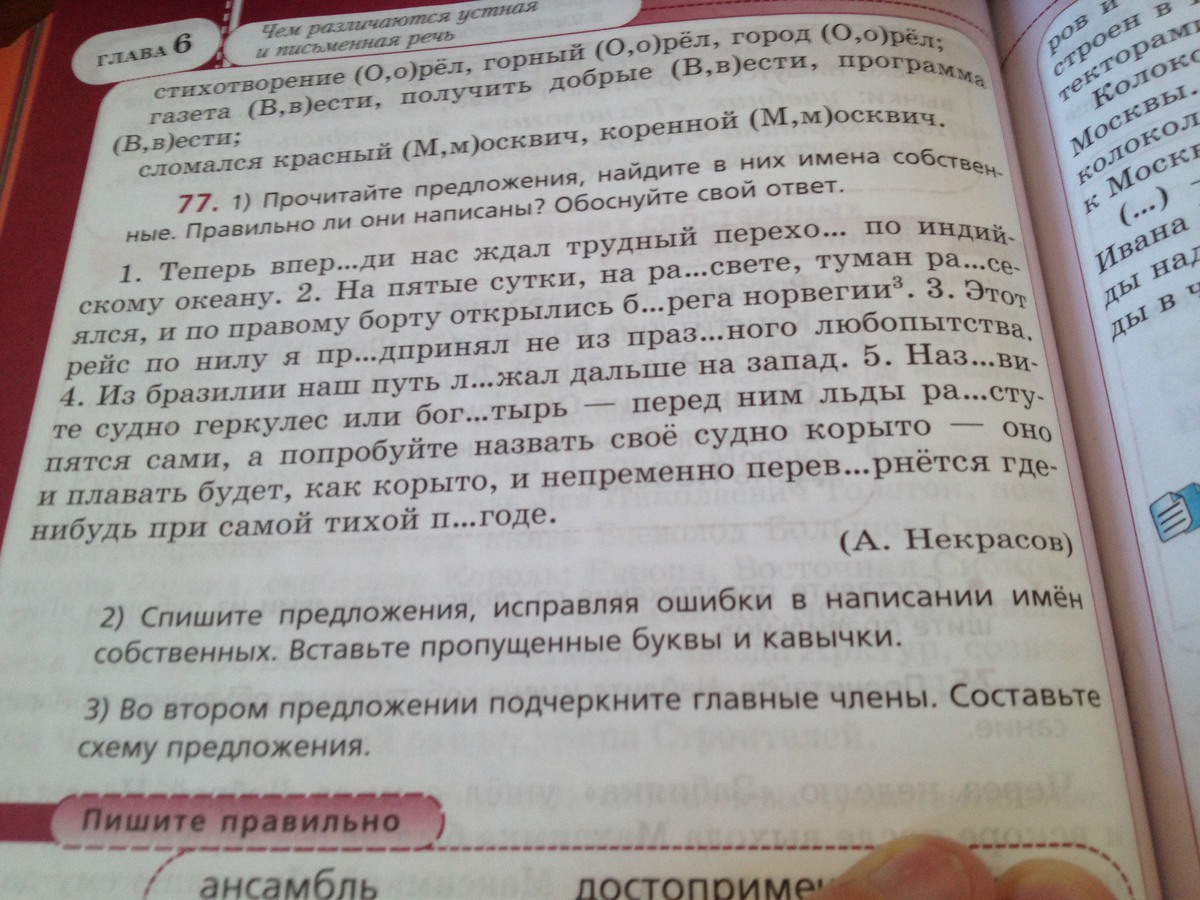 Теперь впереди нас ждал трудный переход по Индийскому океану(С.) На пятые сутки, на рассвете, туман - рассеялся = , и по правому борту открылись= берега - Норвегии( С. ) . [ - = ], [ = - ]Этот рейс по Нилу( С. предпринял не из праздного любопытства. Из Бразилии С. наш путь лежал дальше на запад.Назовите судно "Геркулес" С . или "Богатырь" С. - перед ним льды сами расступятся, а попробуйте назвать своё судно "Корыто" С. - оно и будет плавать, как корыто, и непременно перевернется где-нибудь при самой тихой погоде.
