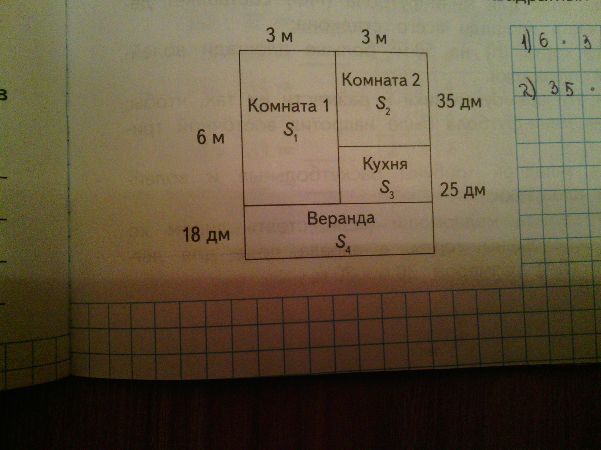 Дедушка Вася построил дом.Найди площадь каждого помещения.Выразил ответы в квадратных метрах.