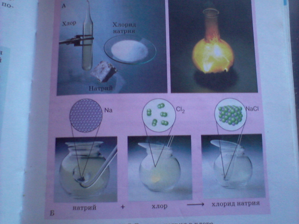1.Металл натрий взаимодействует с хлором с образованием хлорида натрия - поваренной соли.По рисунку 15.7,А опиши реагенты,продукт реакции и признаки ее прохождения.