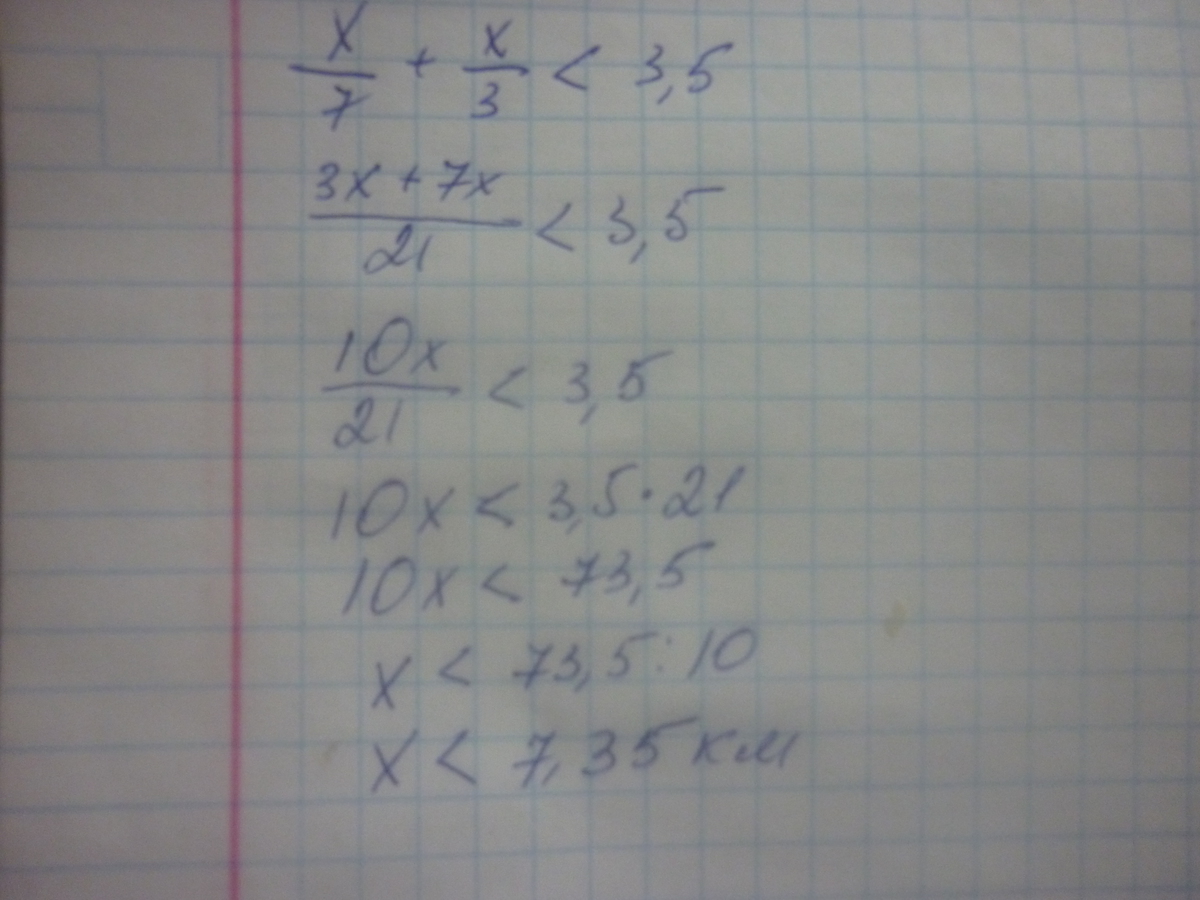 км-расстояние от причала А до В.По условию расстояние должно быть меньше чем 7,35 км