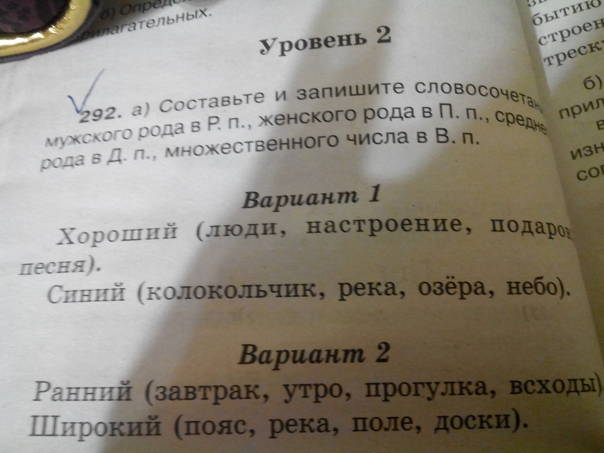 ср.р., дат.п.,хорошему настроению,синему небу,раннему утру,широкому полю