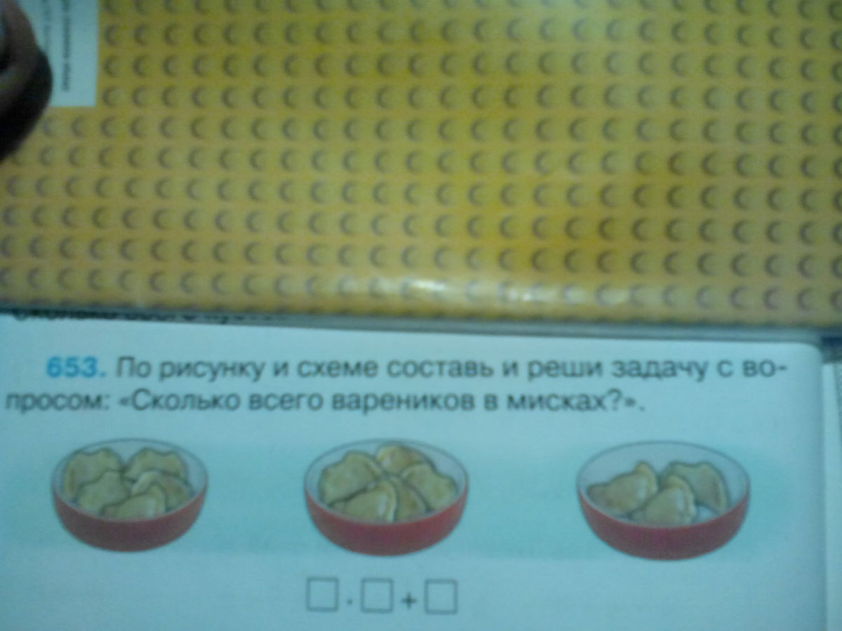 по рисунку и схеме составь и решить задачу с вопросом :"Сколько всего Варенников в миске