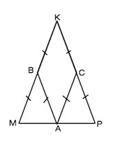 В равнобедренном треугольнике MPK с основанием MP проведены средние линии AB и AC (А принадлежит MP, B принадлежит MK, C принадлежит PK). Определите вид
