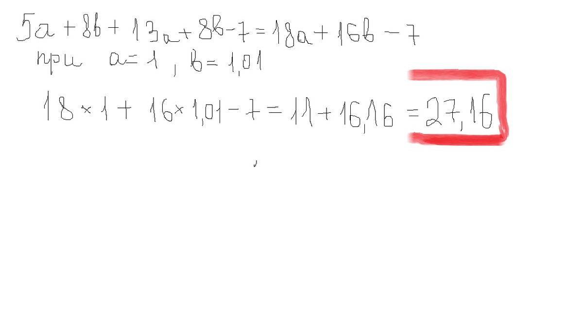 я выражение написала какое получится,а теперь вместо букв подставляешь числа и получится у тебя ттог этого выражения.