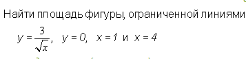 S=интеграл^{4}_[1] 3/√х=6√х=6*√4 - 6*√1=6 кв.ед.