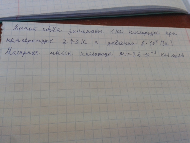 V=m*R*T/P*M=1*8,31*273/8*10^5*32*10^-3=88,6*10^-3 м3=88,6 л