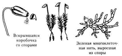1)рисунок2)Попав в подходящие условия,клетка начинает делится и возникает организм,похожий на нинчатую водоросль- протонема.На нитях протонемы через некоторое время появляется шишка из группы клеток.3)По форме они напоминают колбачку,в нижней части стебеля имеют двухслойную стенку.4)рисунок!