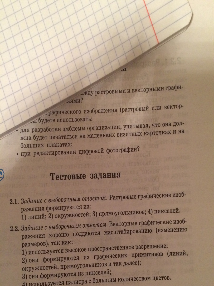 1.Растровые графические изображения формируются из: 1) линий; 2) окружностей; 3) прямоугольников; 4) пикселей.