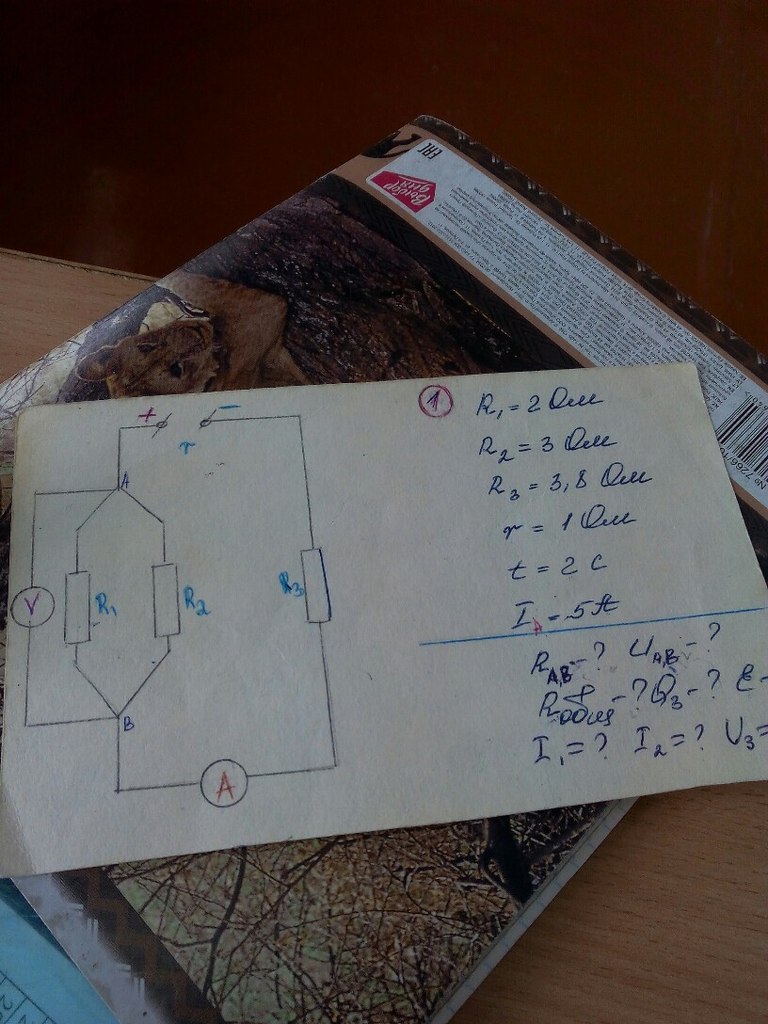 Rобщ = Rab + R3 + r = 1.2 + 3.8 + 1 = 6 Ом