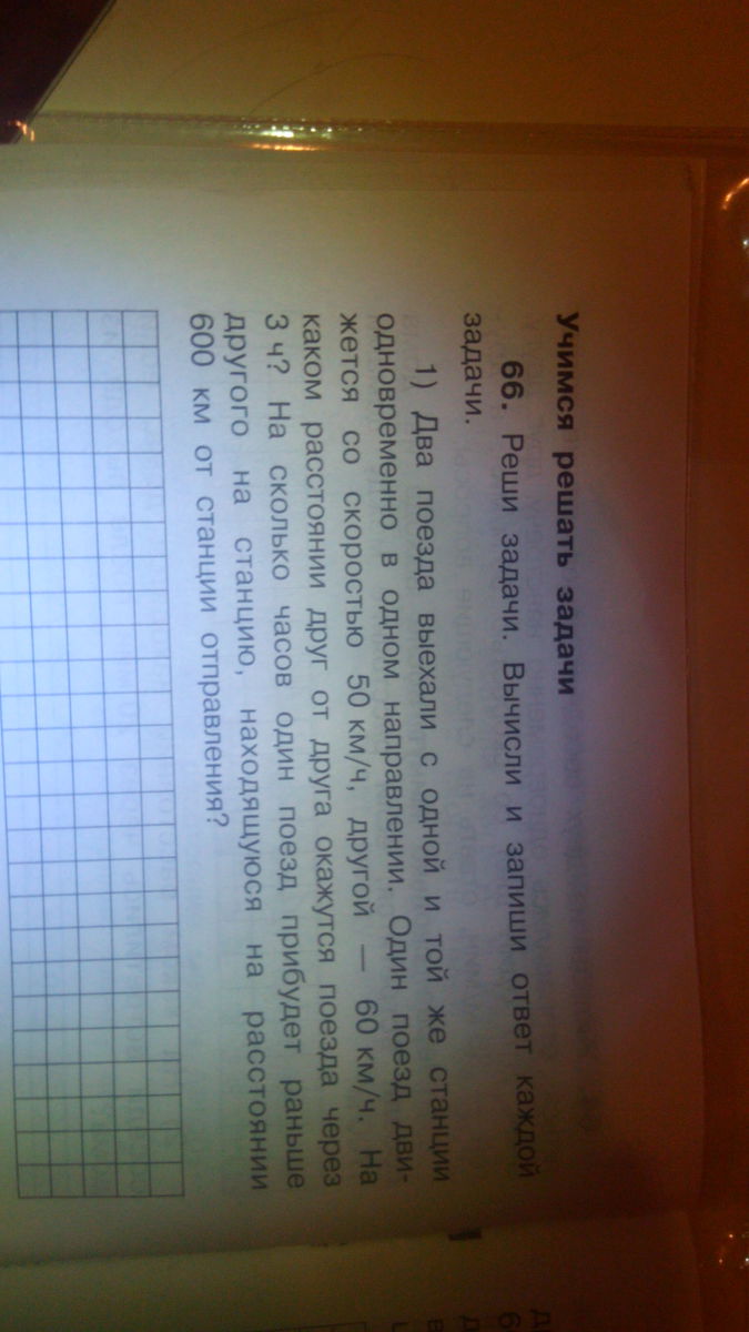 Два поезда выехали с одной и той же станции одновременно в одном направлении.Один поезд движется со скоростью 50 км/ч, другой – 60 км/ч.На каком расстоянии друг от друга окажутся поезда через 3 ч ?На сколько часов один поезд прибудет раньше другого на станцию, находящуюся на расстоянии 600 км от станции отправления ?