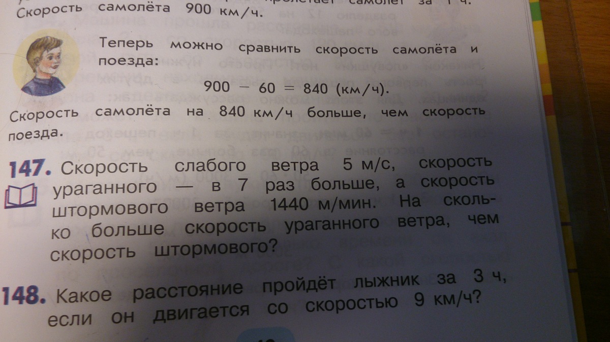 Номер 147 скорость слабого ветра 5 метров в секунду скорость ураганного в 7 раз больше скорость штормового ветра 1440 метров в минуту. на сколько больше скорость ураганного ветра чем скорость штормового?
