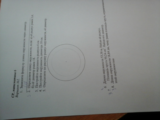 от точки в центре круга вверх проводишь 5 см и вниз 5 см и проведи окружность