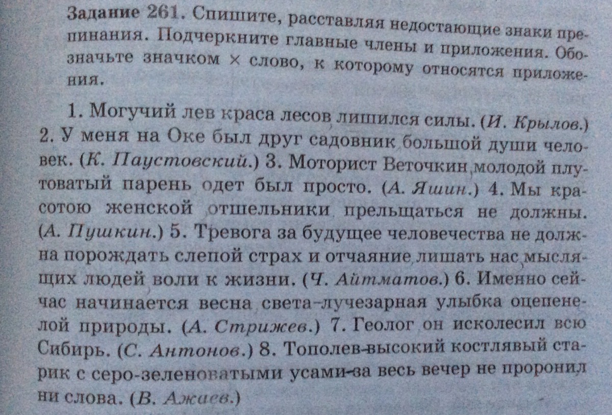 1.Могучий лев-х ,краса лесов, лишился силы.2) У меня на Оке был друг садовник-х , большой души человек. 3) Моторист Веточкин-х, молодой плутоватый парень, одет был просто. 4. Мы-х красотою женской ,отшельники, прельщаться не должны. 5. Тревога за будущее человечества не должна порождать слепой страх и отчаяние, лишить нас -х,мыслящих людей, воли к жизни.6. Именно сейчас начинается весна света -лучезарная улыбка оцепенелой природы.7. Геолог , он-х исколесил всю Сибирь. 8. Тополев-х- высокий костлявый старик с серо-зеленоватыми усами - весь вечер не проронил ни слова.